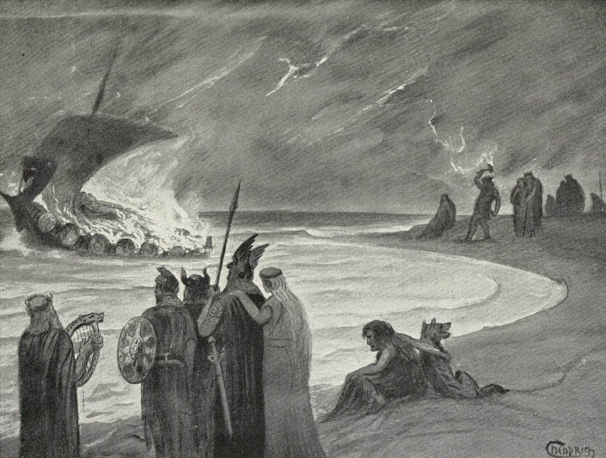 Diese Zeichnung entdeckten wir im Juli 2013 in dem Heft Wandbilder zur Deutschen Götter- und Sagen-Welt, herausgegeben von Julius Lohmeyer mit Texten von Felix und Therese Dahn. Das Original hatte die Größe 64 x 90 cm. |
